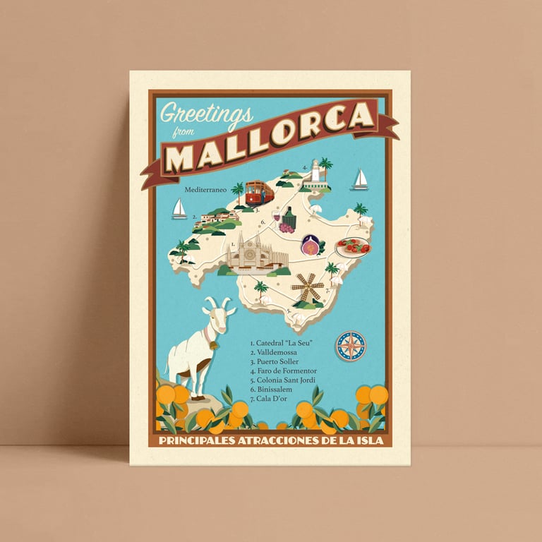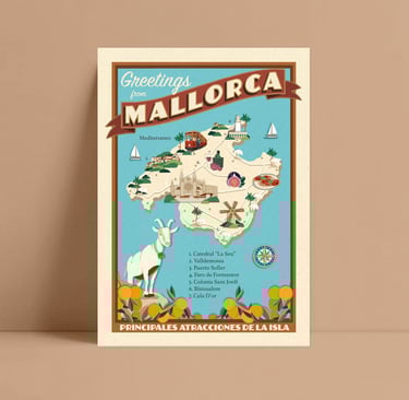 Colección de Postales ilustradas impresas en la Unión Europea sobre papel FSC de alto gramaje. Formato 12,4 × 17,6 cm (4,88 × 6,93”), pensadas como recuerdo, regalo o pieza decorativa de colección.