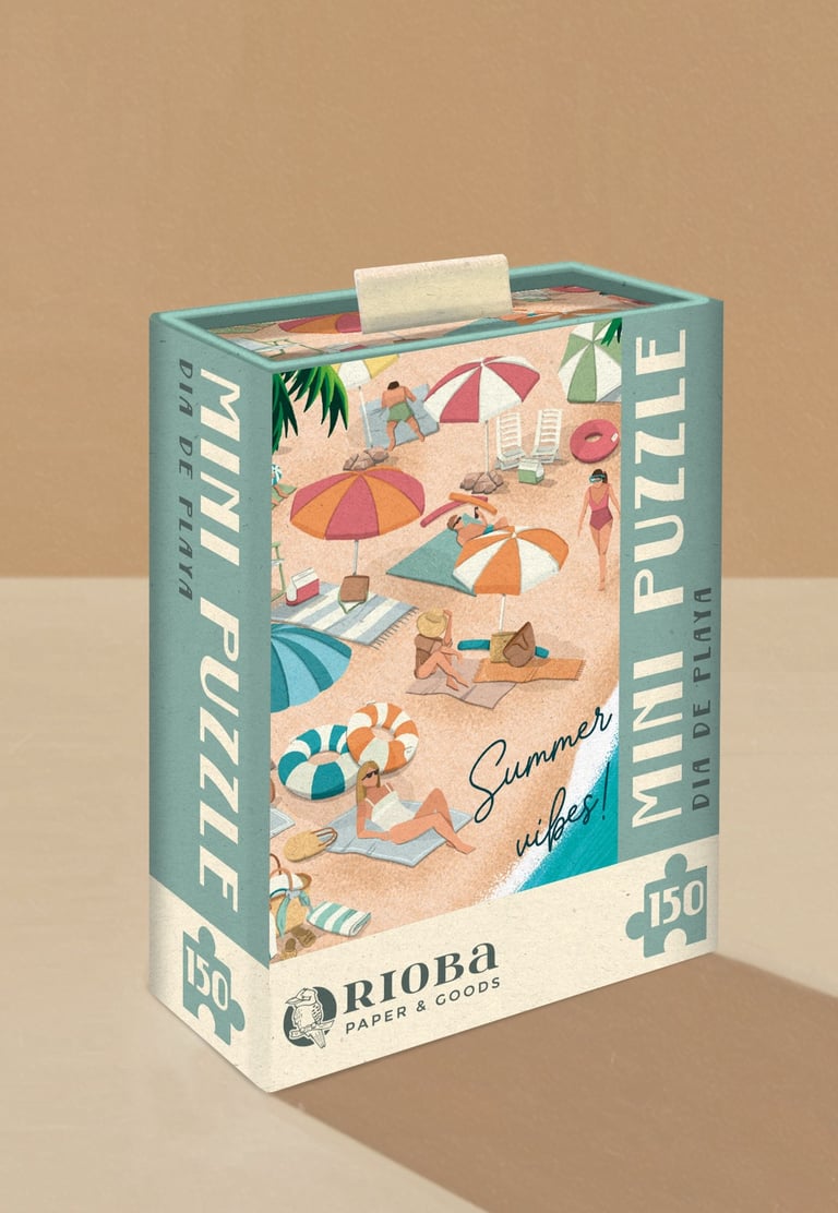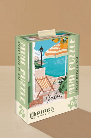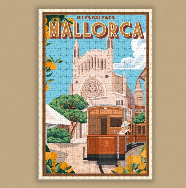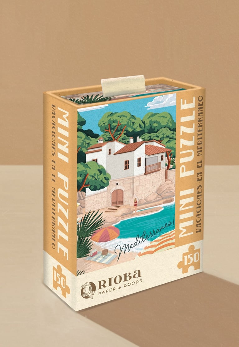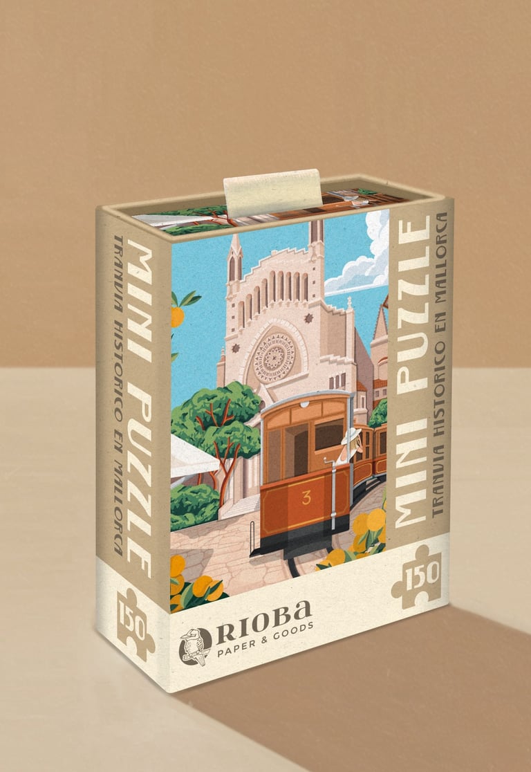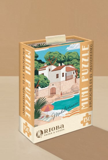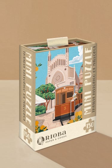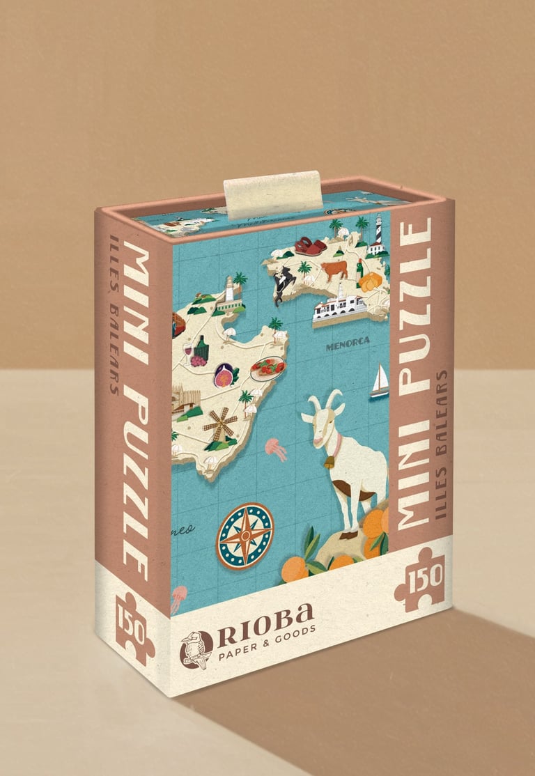 Mini Puzzles de 150 piezas, con ilustraciones inspiradas en Mallorca. Presentado en packaging de caja rígida deslizante. Dimensiones: 10x15 cm - 4"x6"